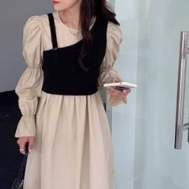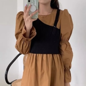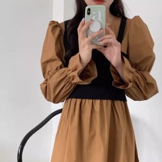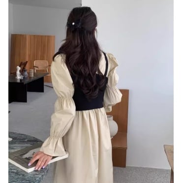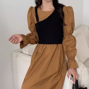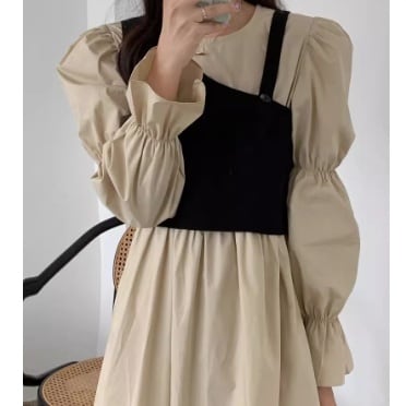 袖は2つの切り替えで上部はパフスリーブ、袖口はフレアーの長袖になっています。