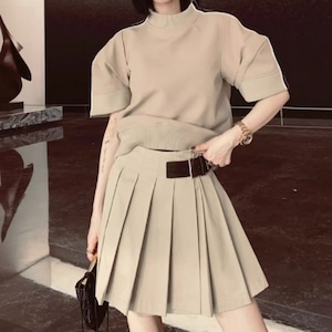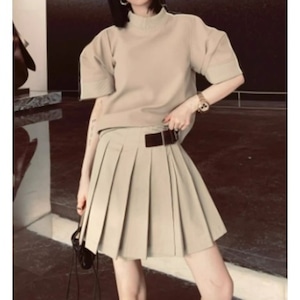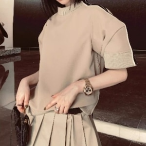 立体感のあるプリーツストライプと、すっきりとしたハーフネックデザイン。無駄を削ぎ落としたシルエットの中に、さりげない存在感を宿す一枚です。