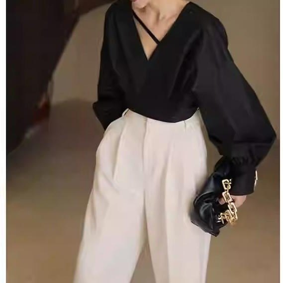 Puff Vneck Design Tops*S-1088