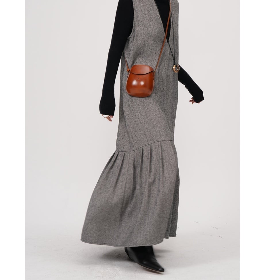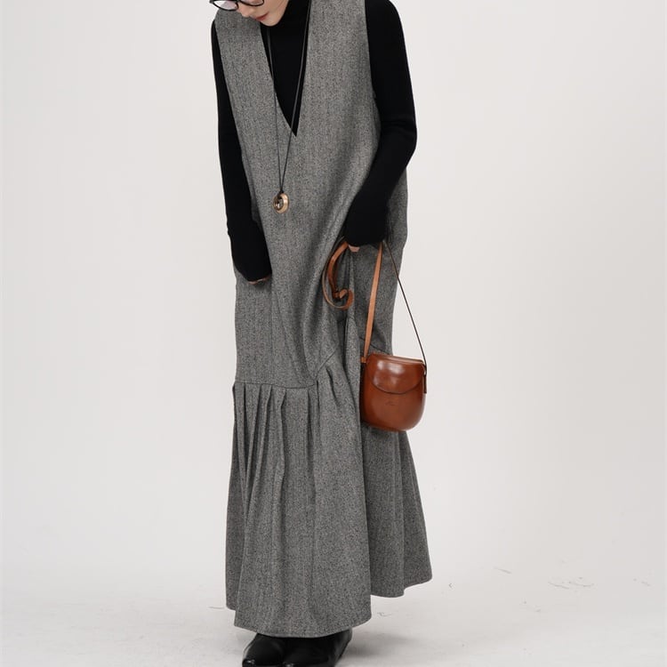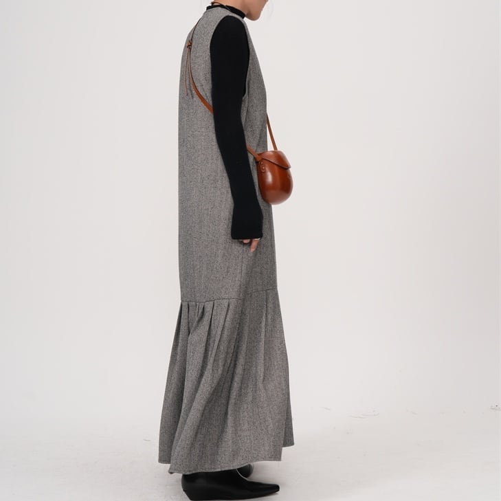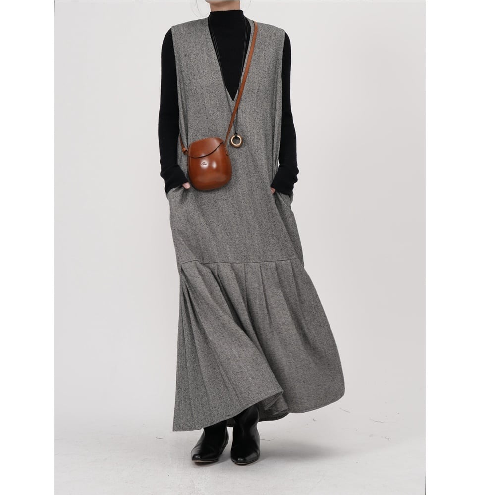 深めのVネックデザインで、首元のラインを美しく長く見せ、エレガントさとセクシーさを引き立て、1枚で着てもレイヤードしても楽しめ、腕の細さを際立たせて軽やかな印象をプラスします。