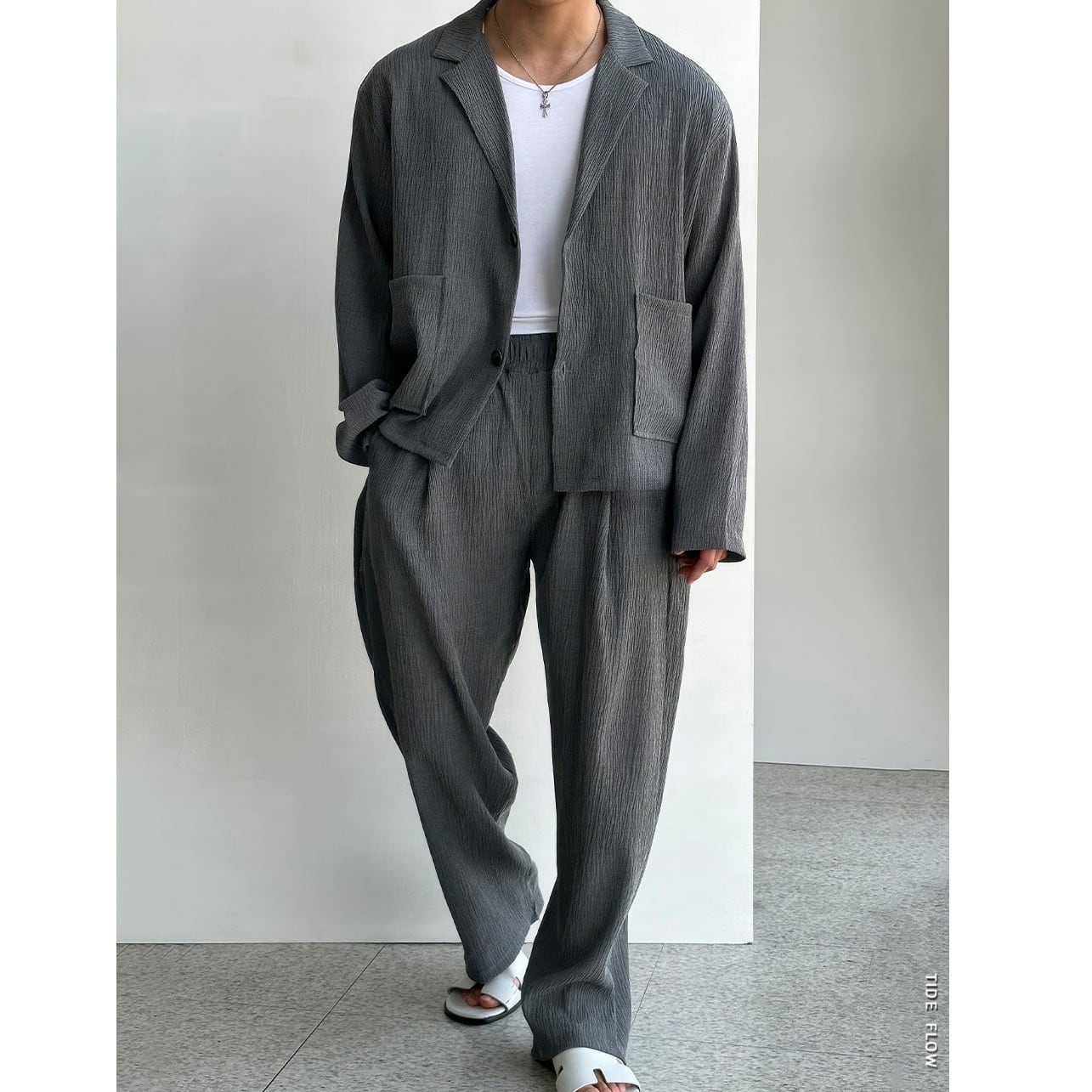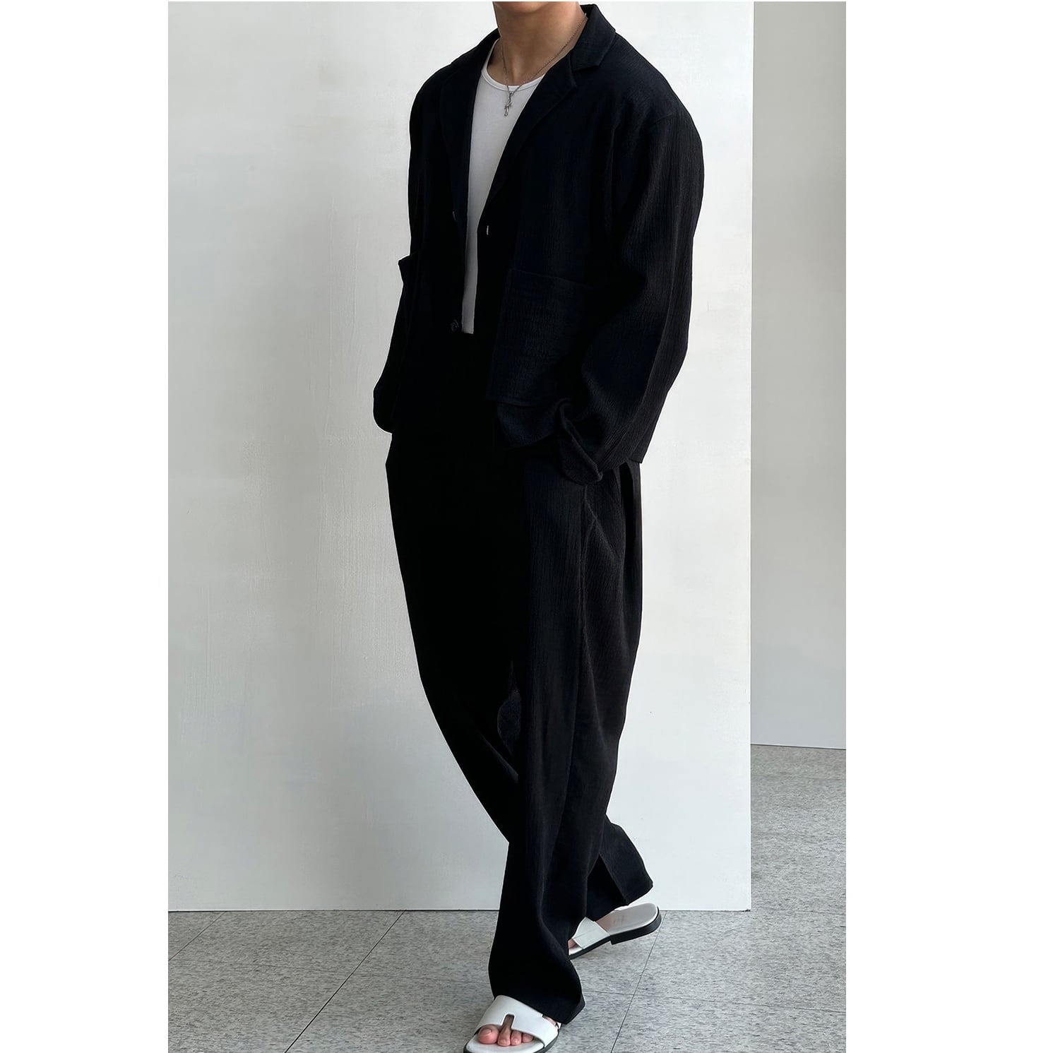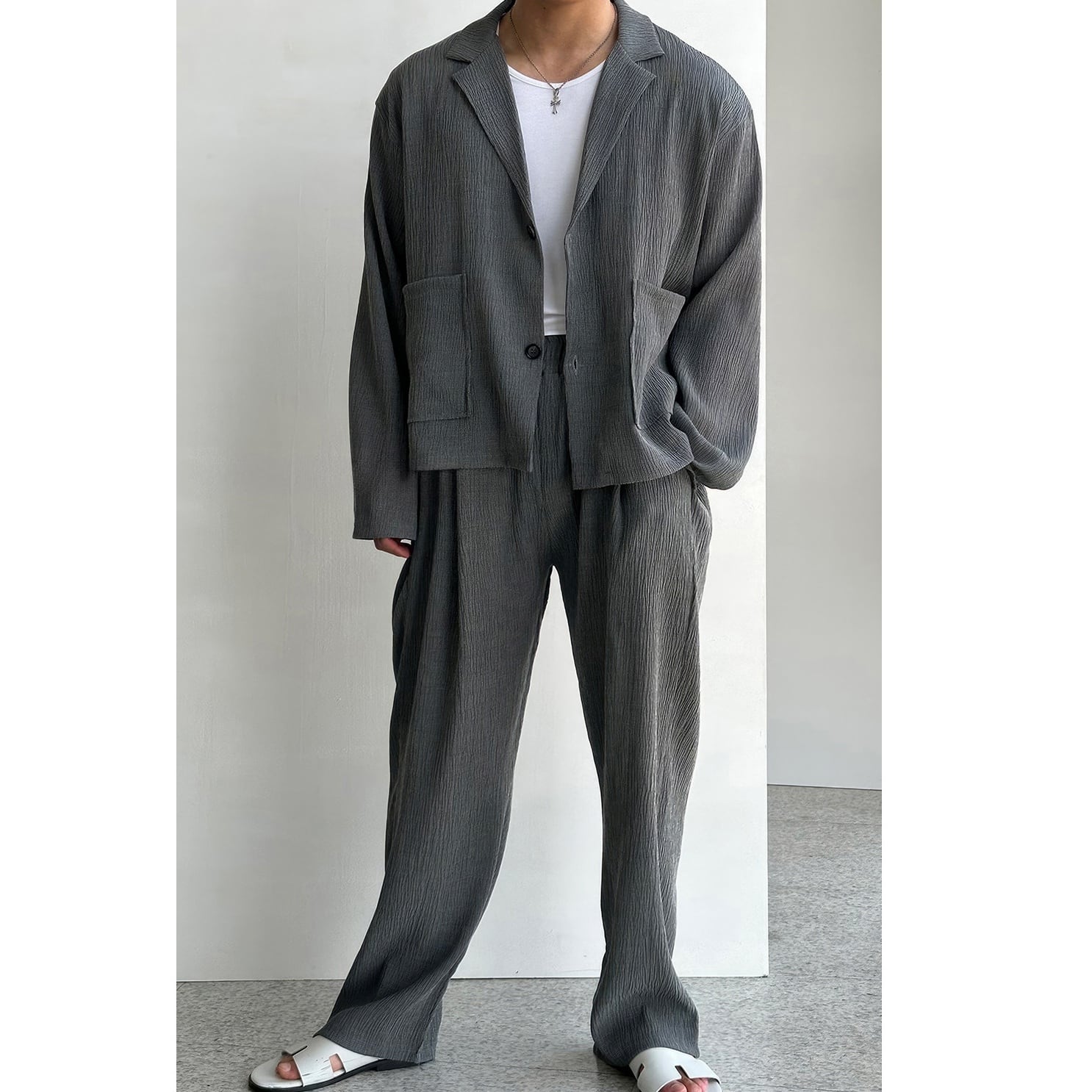 Men's:Wrinkle Tailored Jacket & Straight Wide-Leg Slacks Set*MS-1