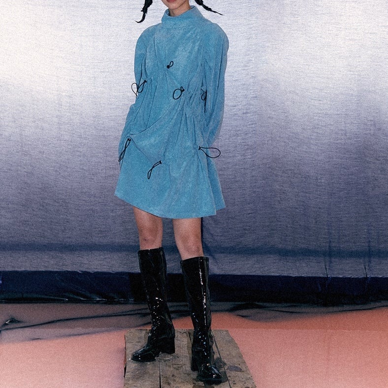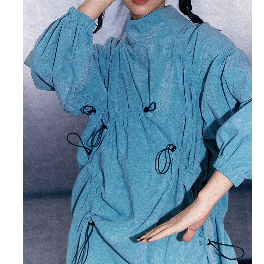 立体的なギャザーとドローストリングで、シルエットを自由に操れるデザインワンピース。