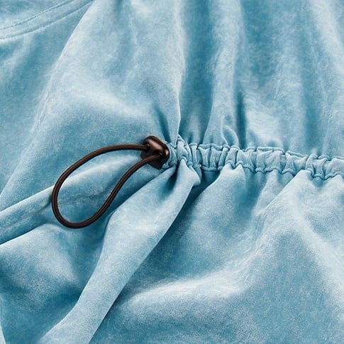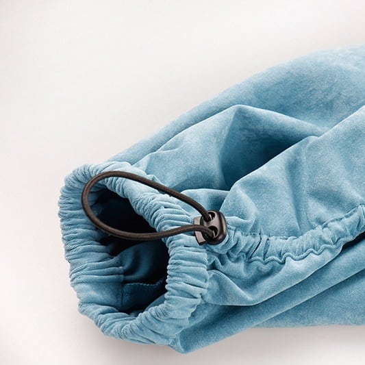 ほんのりムラ感のあるブルー生地が、どこかアートピースのような雰囲気を纏わせてくれます。