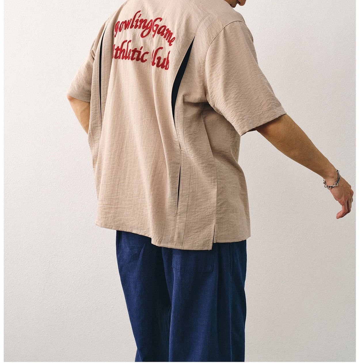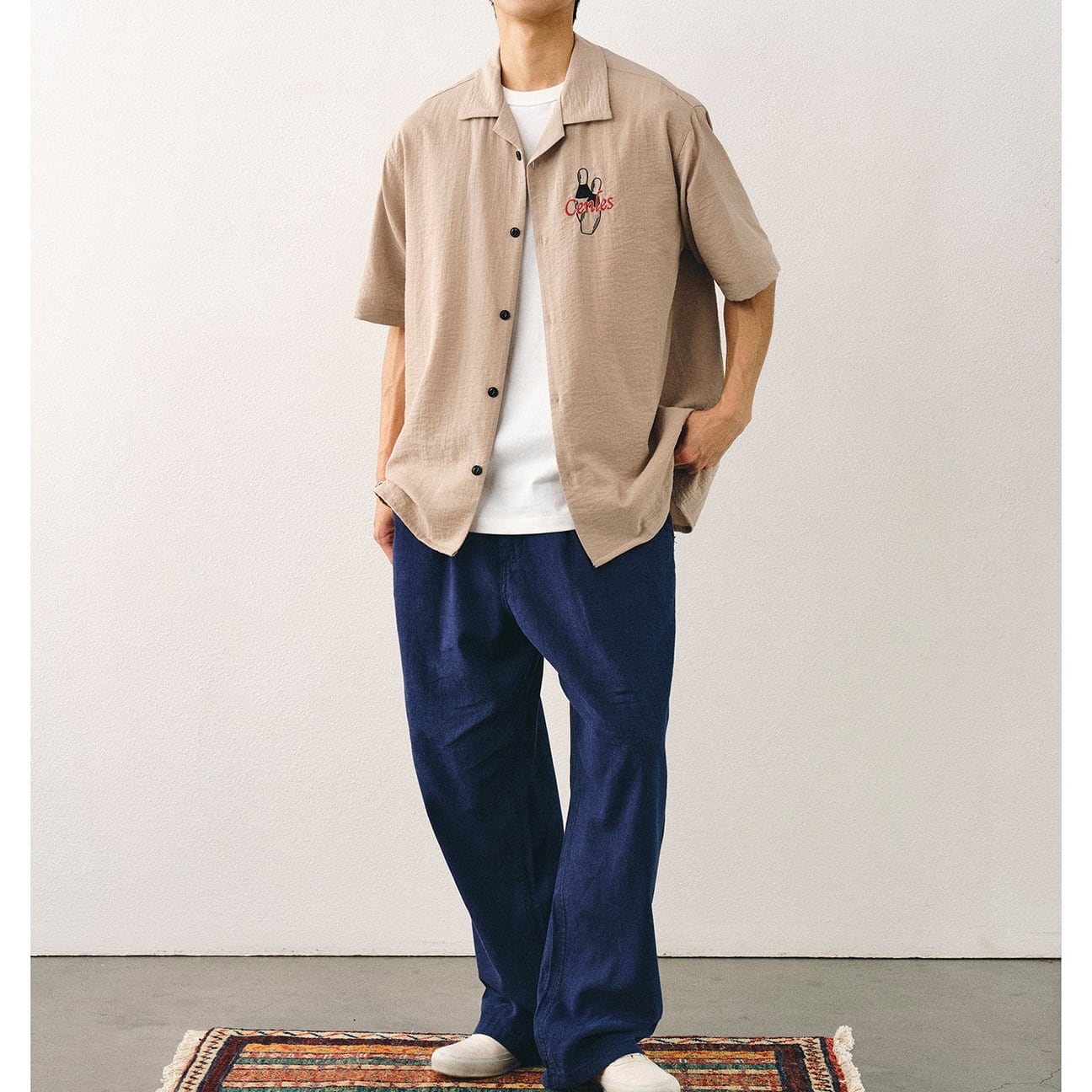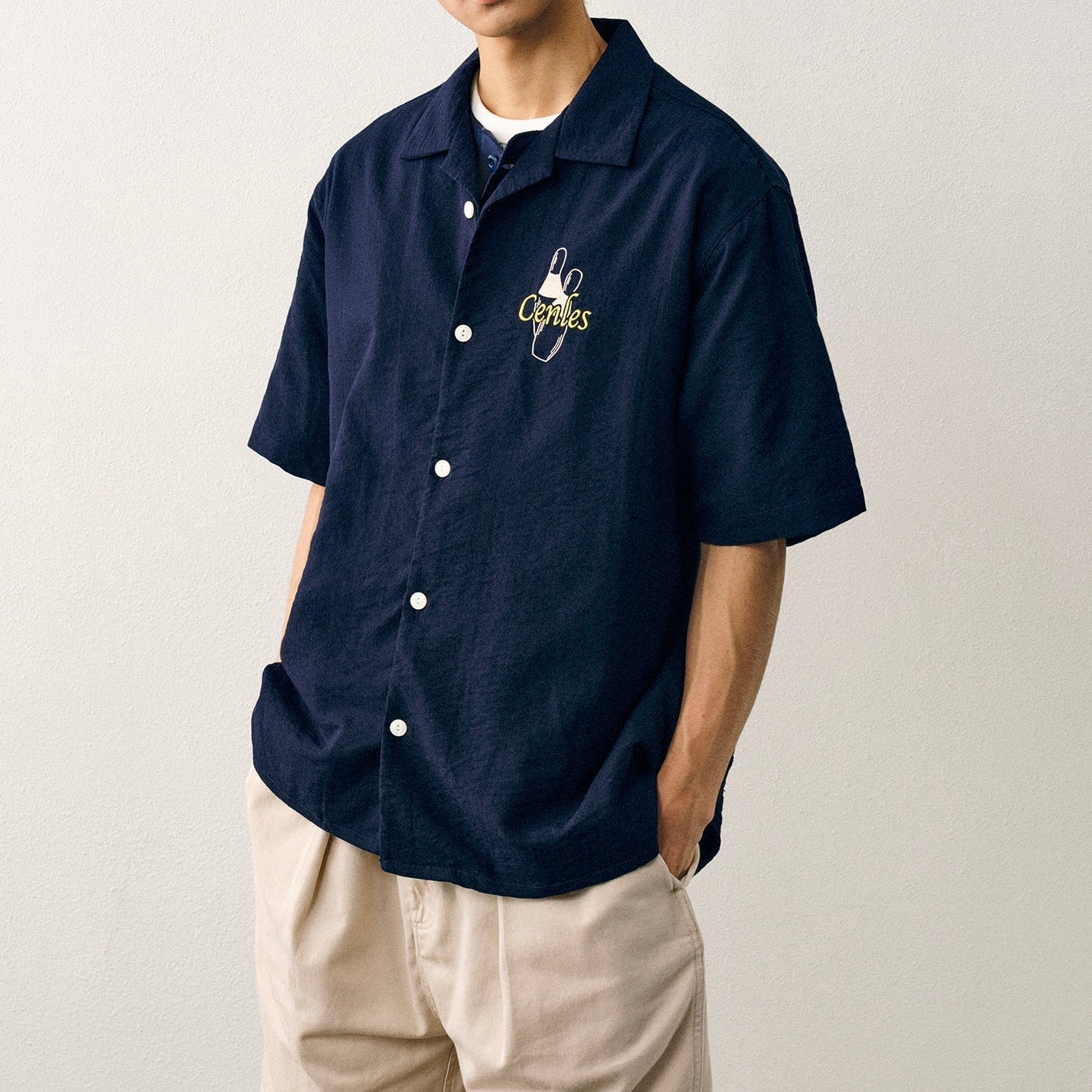 レトロなクラブテイストを感じさせるクラシックな雰囲気に遊び心をプラスした、刺繍デザインがアクセントのオープンカラーシャツ。