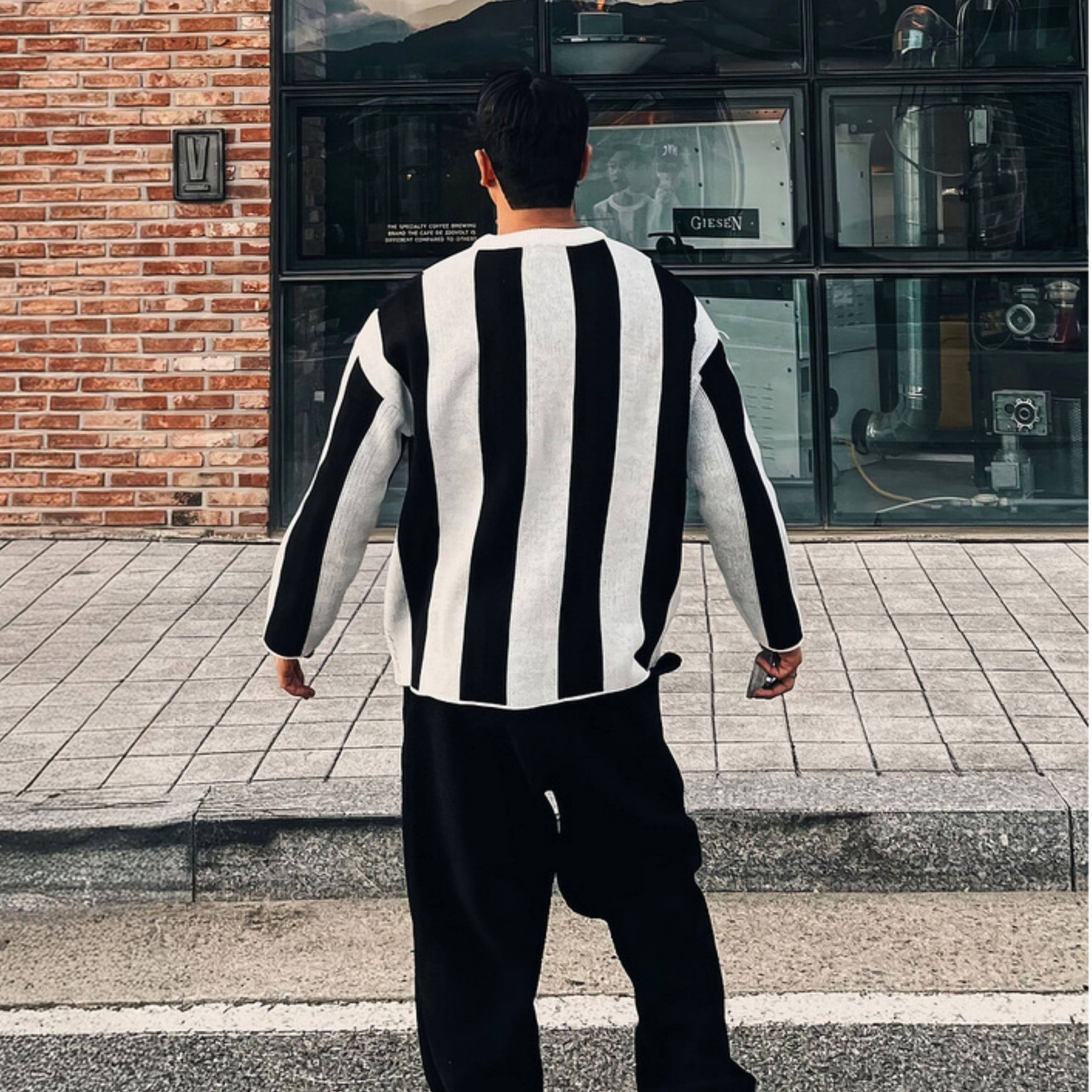 Men's : Black & White Stripe Retro Knit Top*MS-12