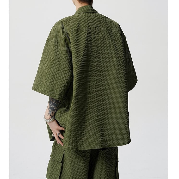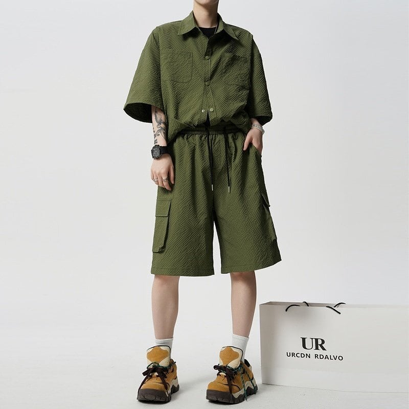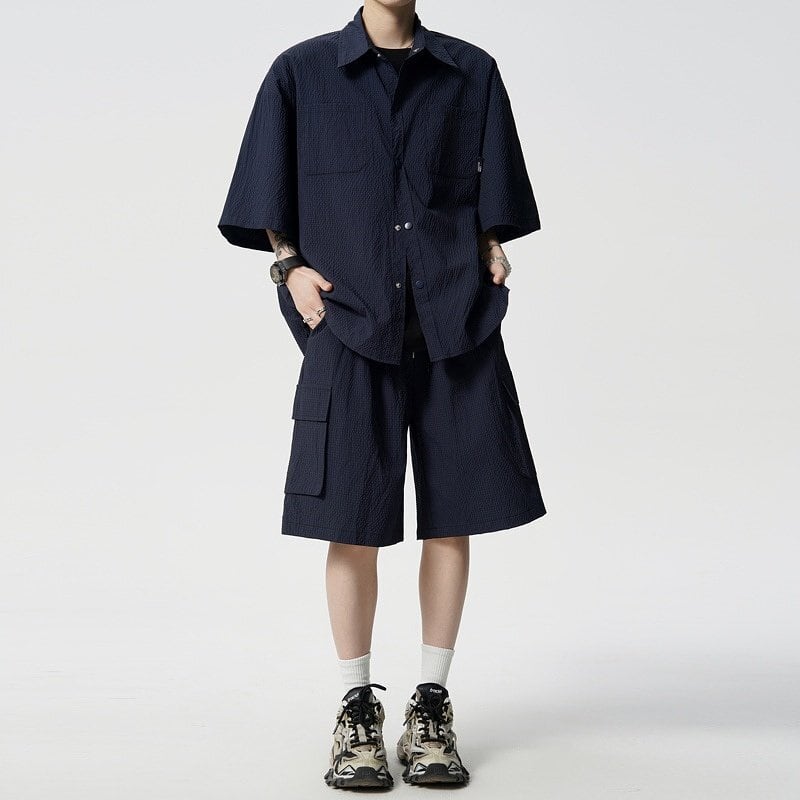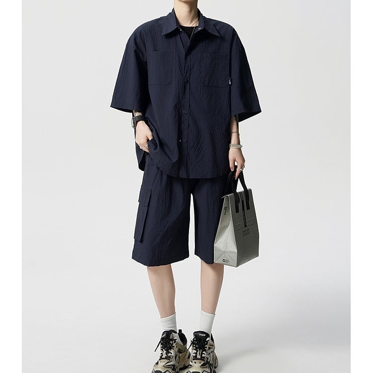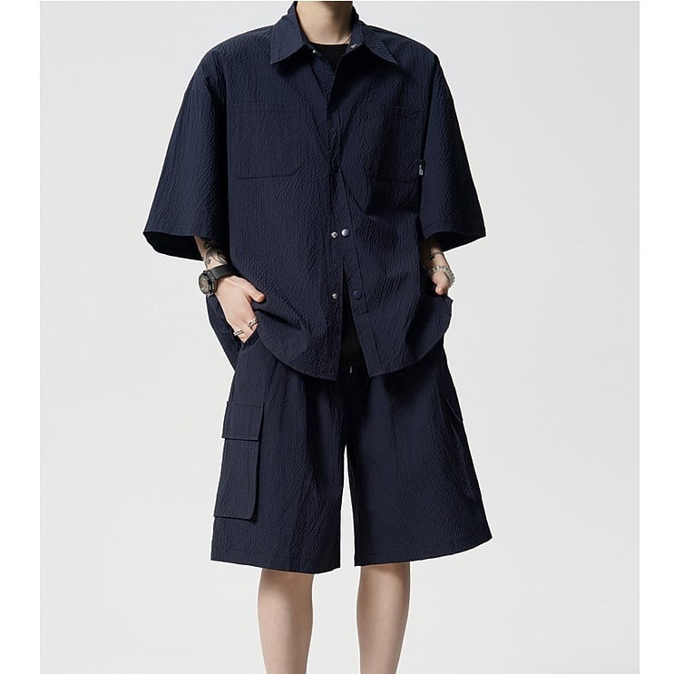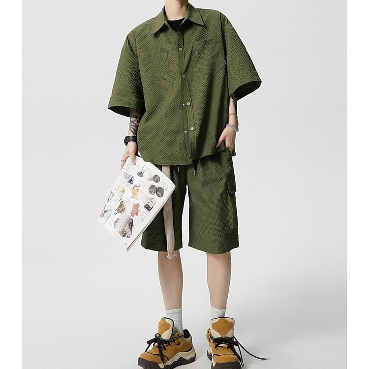 Men's : Seersucker Short Sleeve Shirt & 5-Length Shorts Set*MS-14