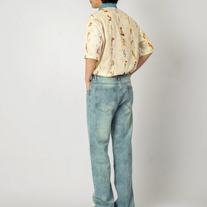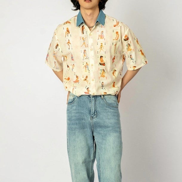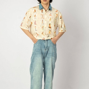 程よくゆとりのあるシルエットでさらっと羽織るだけでこなれた印象に。デニムやスラックスはもちろん、ショーツと合わせた夏らしいスタイリングもおすすめ。主役として着るのはもちろん、インナーを仕込んで軽い羽織としても活躍。レトロ・アート・アメカジの空気感を楽しめる一着です。