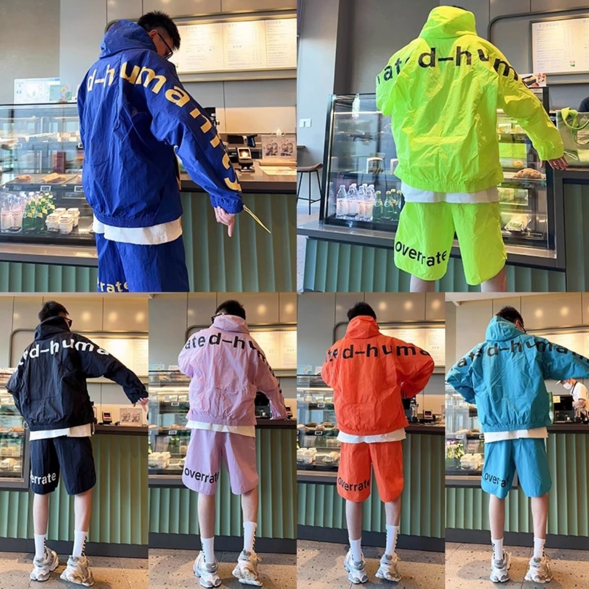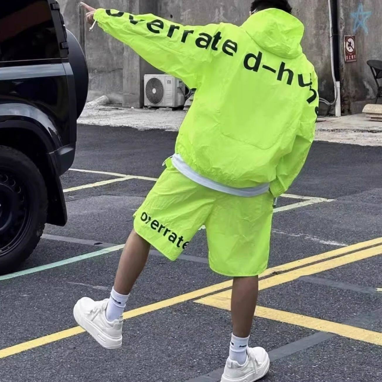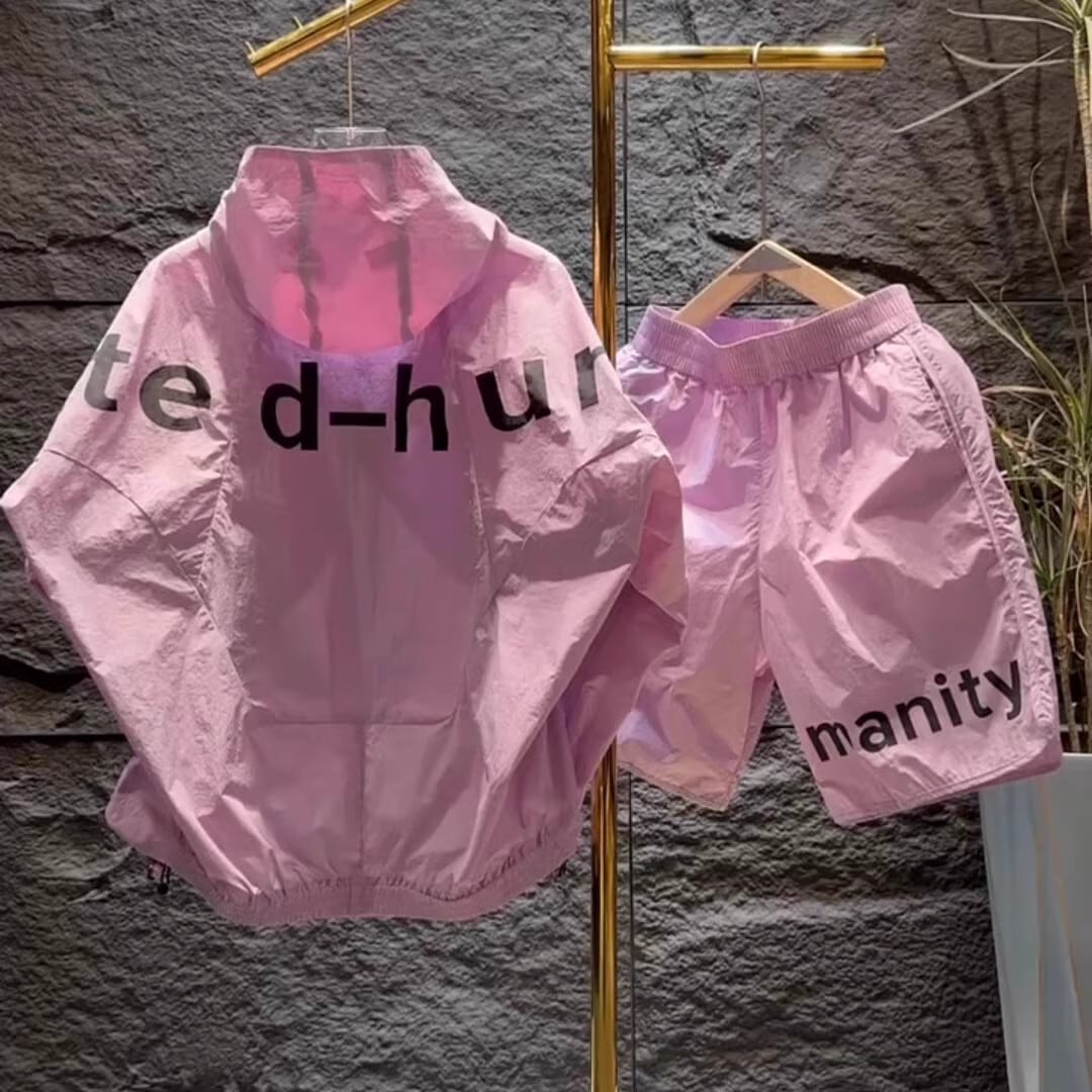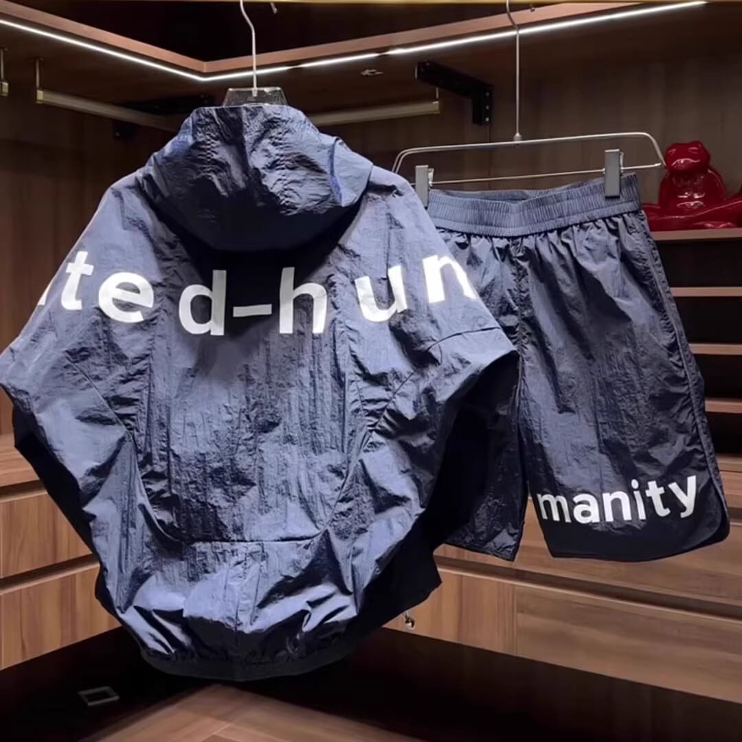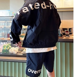 オーバーサイズ設計により、体型を選ばずラフに着用可能。フード付きジップジャケットとショートパンツの2点セットで、ストリートスタイルやアクティブシーンにも相性抜群。