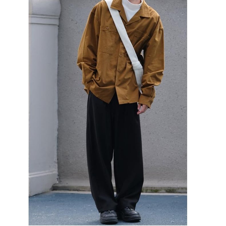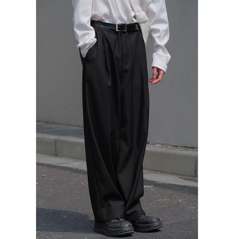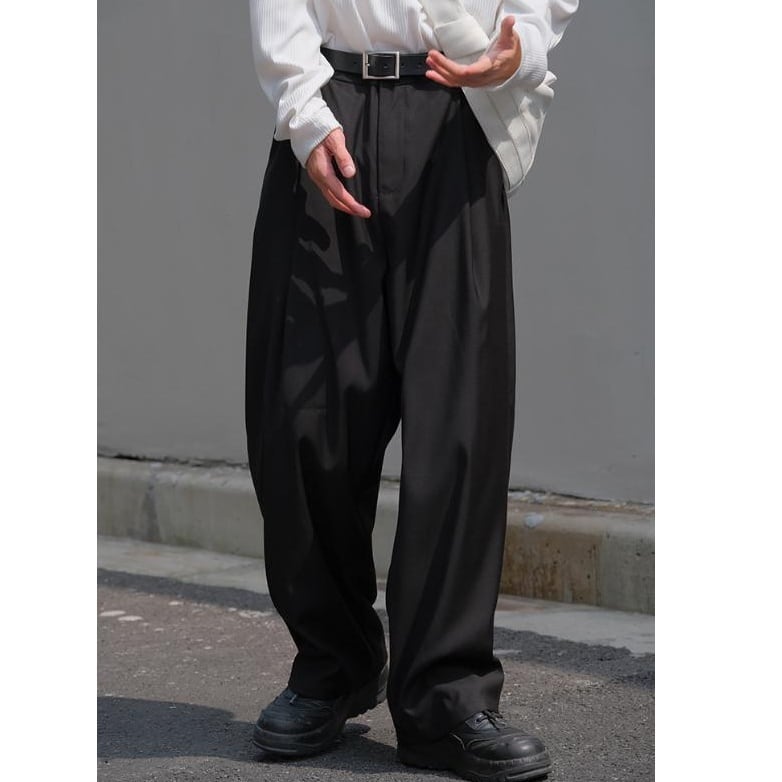 深めのタック設計により腰回りはすっきり、裾にかけて大胆に広がるライン。無駄な装飾を削ぎ落とし、“シルエットそのもの”で魅せる一本。