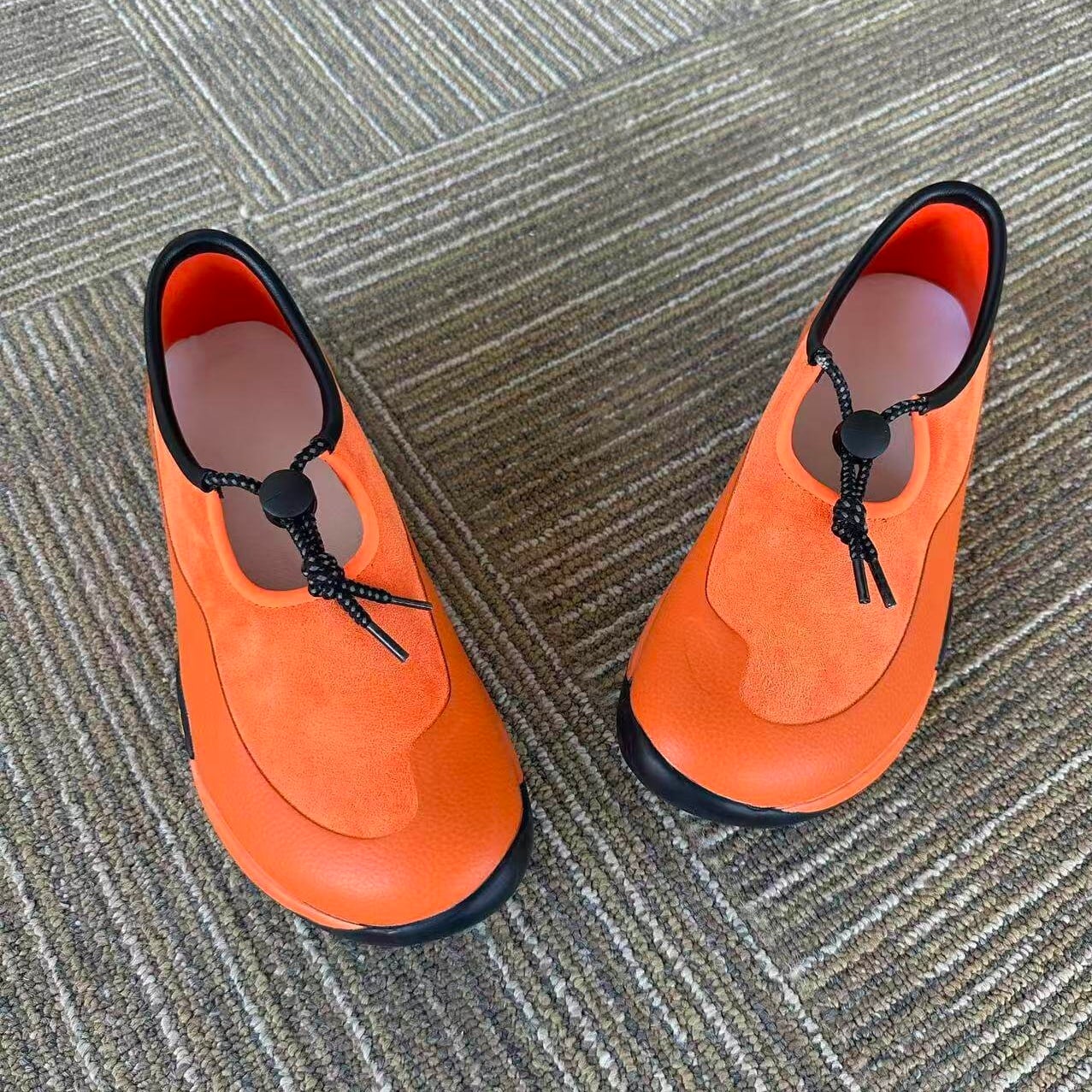 丸みのあるトゥデザインがモードにもカジュアルにも自然に溶け込みます。
