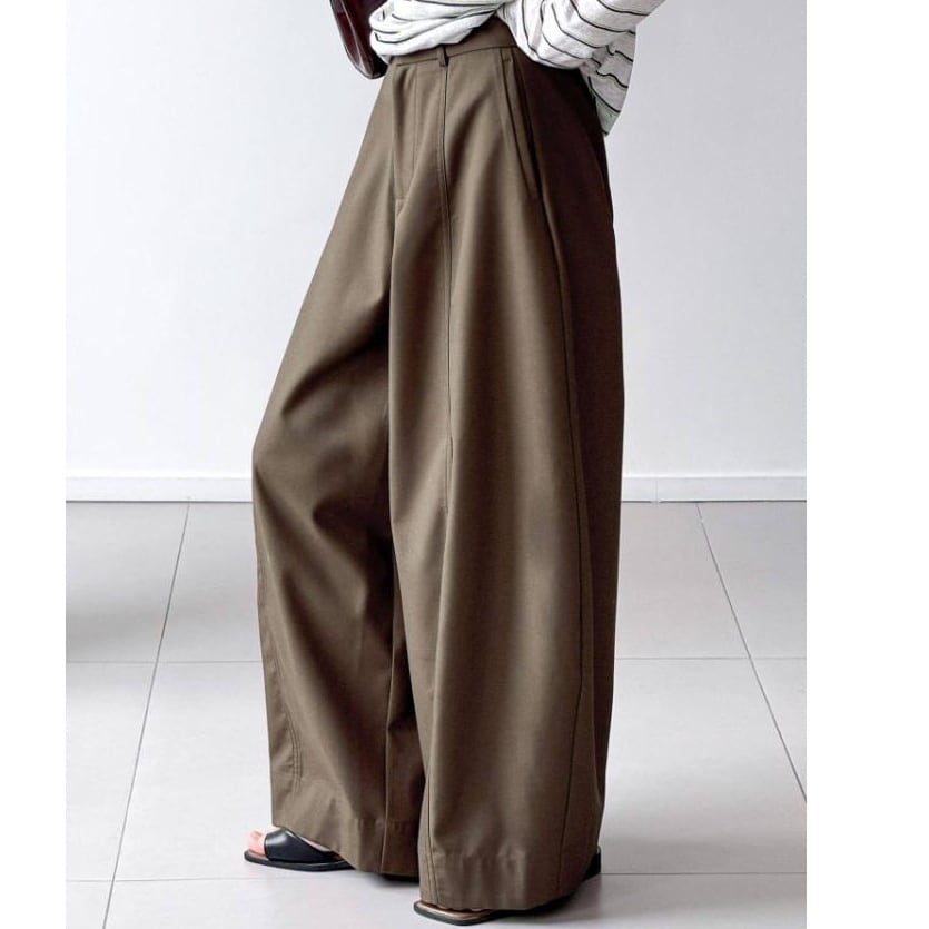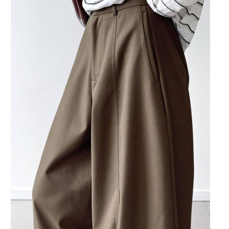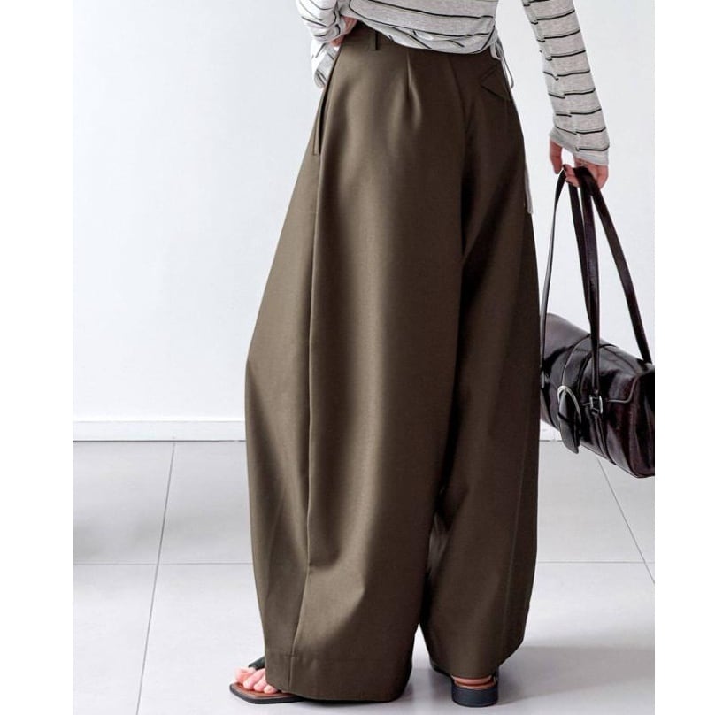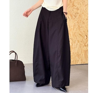 ウエストはすっきり、ヒップから裾にかけて大胆に広がるワイド設計。