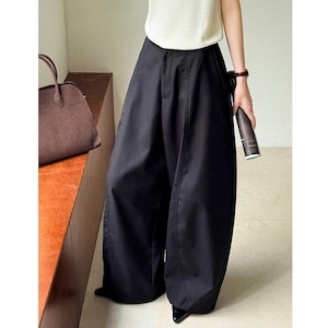 深めに入ったタックと立体的なカーブラインが歩くたびに美しいドレープを生み出します。