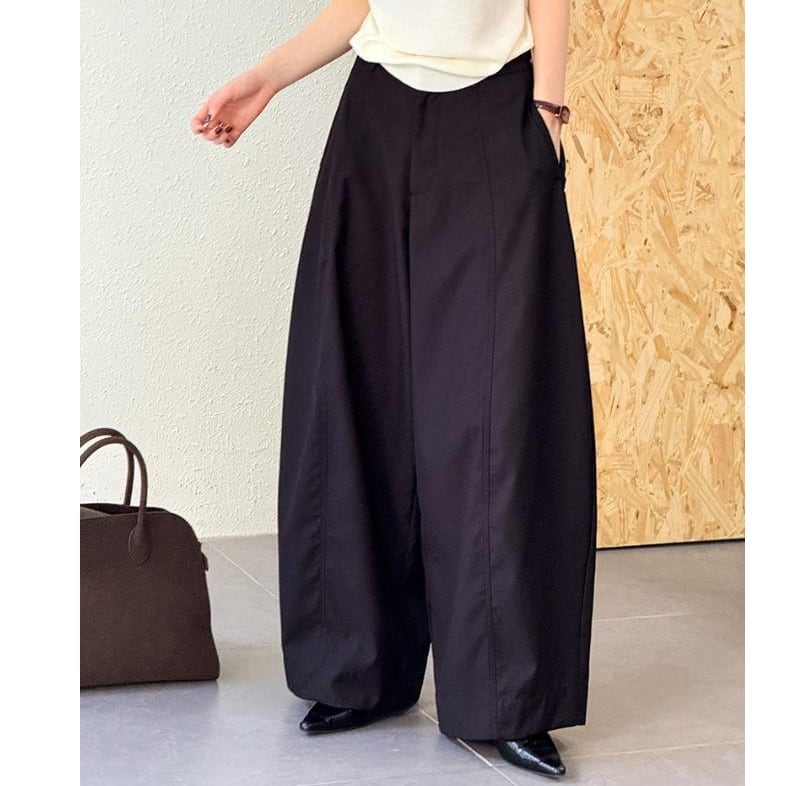 “ただ広いだけ”ではなく、計算された丸みシルエットでモード感をプラス。