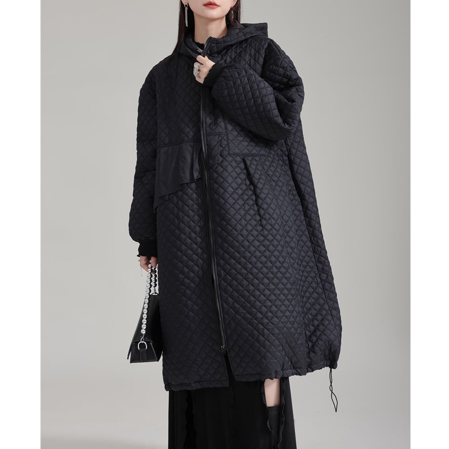アシンメトリーデザインが他にはないルックスで周りと差がつくキルティングコート。