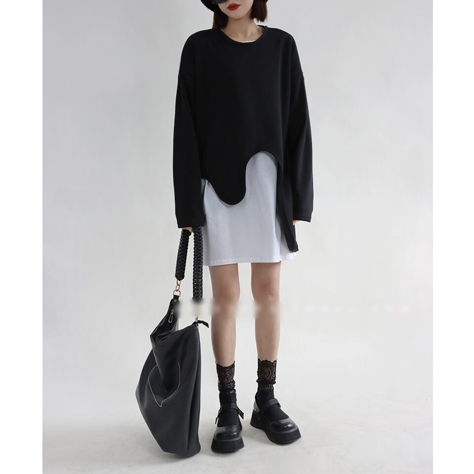 左右デザインをアシンメトリーで仕上げた、こなれ感のある一枚。
