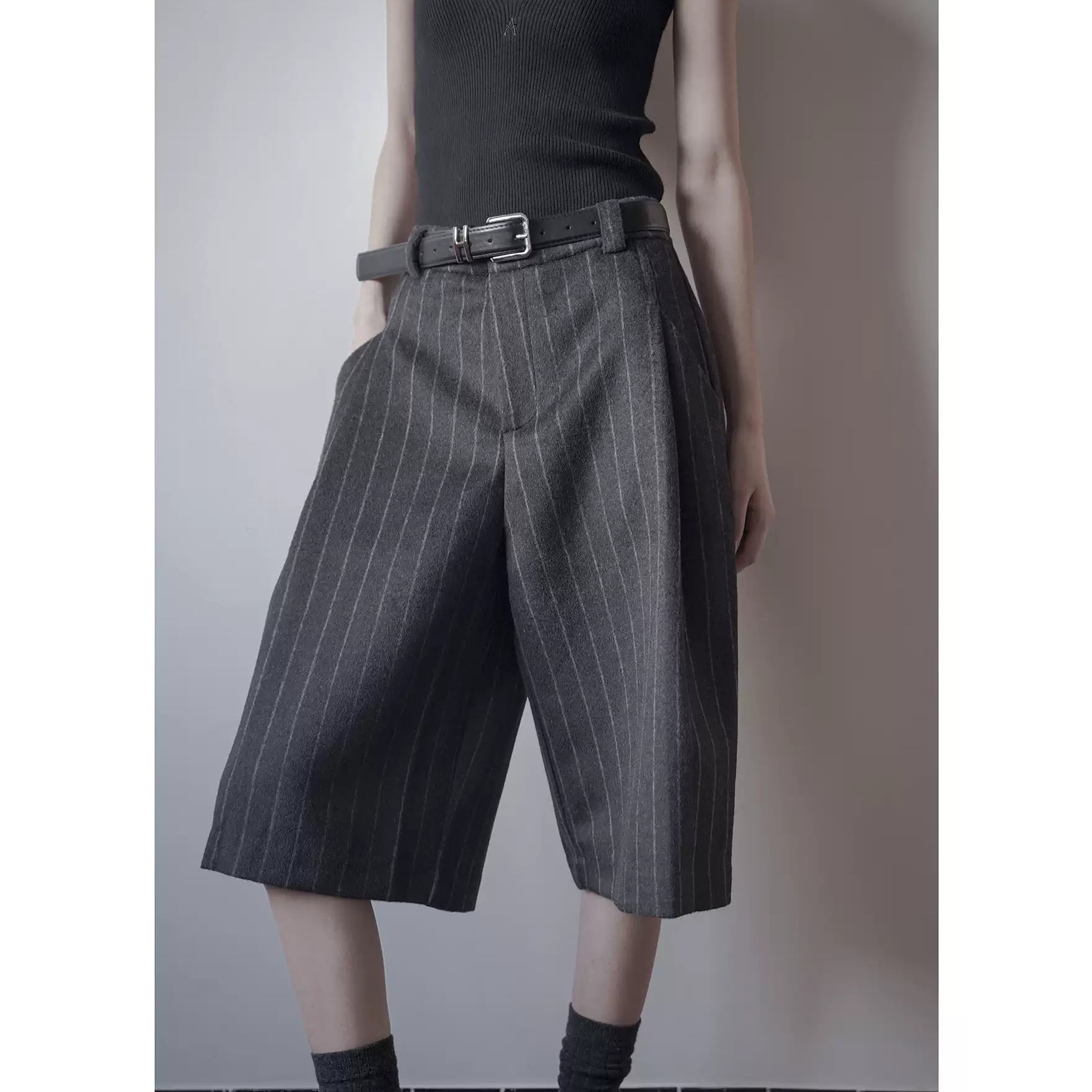 ピンストライプデザインがマニッシュなハーフパンツ